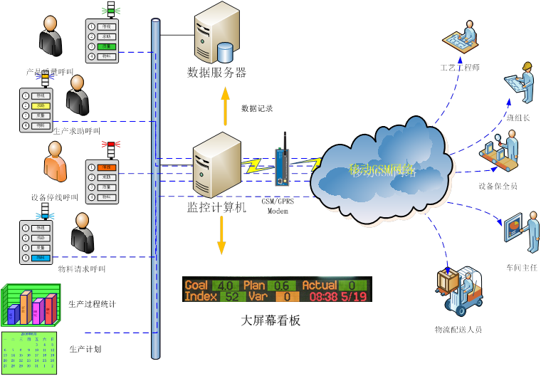 射频识别的应用 RFID是Radio Frequency Identification的缩写,即射频识别。常称为感应式电子晶片或近接卡、感应卡、非接触卡、电子标签、电子条码,等等。RFID的应用非常广泛,目前典型应用有动物晶片、汽车晶片防盜器、门禁管制、停车场管制、生产线自动化、物料管理。 RFID技术,几乎涵盖了汽车行业的所有过程。汽车整车装配时,主要是要实现将汽车各类生产线上实时采集的生产数据、质量监控数据等,传送给物料管理、生产调度、质量以及其他相关各部门,更好地实现对原材料供应、生产调度、销售服务、质量监控以及整车的终身质量跟踪等功能。 信息化:随着JIT(及时生产),LEAN(精益生产)ERP(企业资源管理)的广泛深入应用企业的管理平台应用得到了极大的提高,自动化的大量应用是生产制作过程走向智能,ERP系统和精益生产等应用作为业务运营和企业战略制定的有效工具。生产制造过程执行系统(MES)是有效的生产设备和ERP系统的沟通桥梁,MES系统是一套面向制造企业车间执行层的生产信息化管理系统。MES可以为企业提供包括制造数据管理、计划排程管理、生产调度管理、库存管理、质量管理、人力资源管理、工作中心/设备管理、工具工装管理、采购管理、成本管理、项目看板管理、生产过程控制、底层数据集成分析、上层数据集成分解等管理模块,为企业打造一个扎实、可靠、全面、可行的制造协同管理平台。 随着工业4.0时代的来临,智能工厂和智能制造发展是未来工业发展的方向。我们的工程部也在此大背景下发展起来,自动化控制系统、伺服控制系统、生产线及单机设备的自动化系统改造升级、生产制造执行系统(MES)、ANDON系统。主要目的是致力于能为国内外的客户提供智能制造和产业升级的自动化系统和软件系统的设计和升级改造,提高生产效率和更好的为精益生产提供有效的管理手段。让我们的客户能在产业升级的前进浪潮中快速适应市场变化和稳健发展。